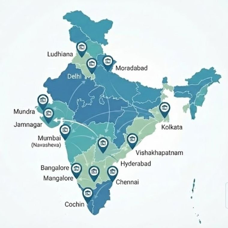 From the strategic ports of Mundra, Cochin, Jamnagar and Chennai to the industrial heartlands of Delhi, Ludhiana, and Moradabad, we guarantee consistent, high-volume supply for your production lines.